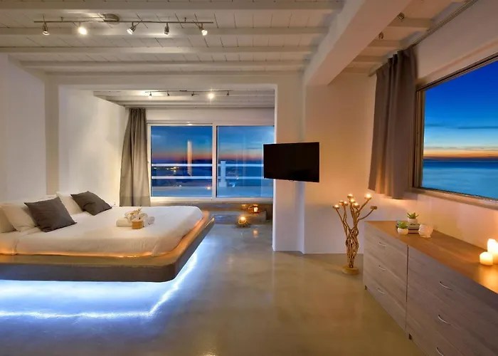 De gesitueerde in Mykonos Town Villa Rubini Mykonos Town bevindt zich op 20 minuten wandelen van het Lena's Huis en beschikt over een terras met uitzicht op de zee. Deze 6-badkamer villa biedt autoverhuur en nodigt gasten uit om het Landbouwmuseum te bezoeken, dat op 1 km afstand ligt.